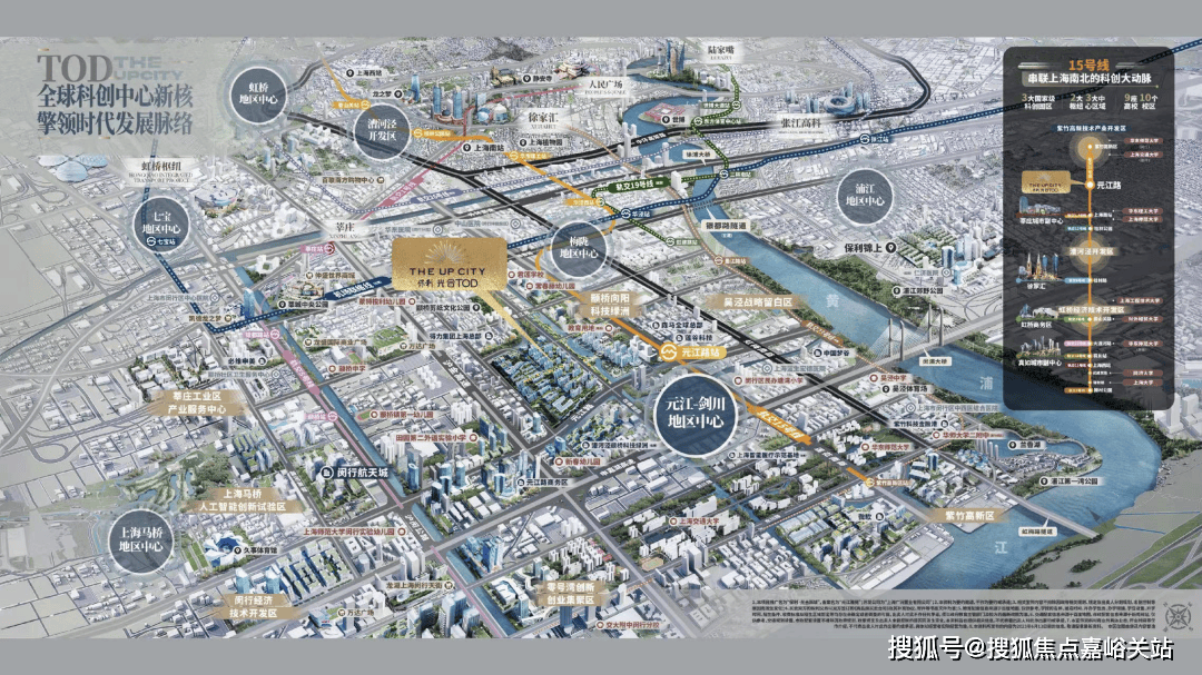 也正是凭借15号线和虹梅路高架,项目北接漕河泾科创园和新晋高水平科学策源地华泾,南接大零号湾,