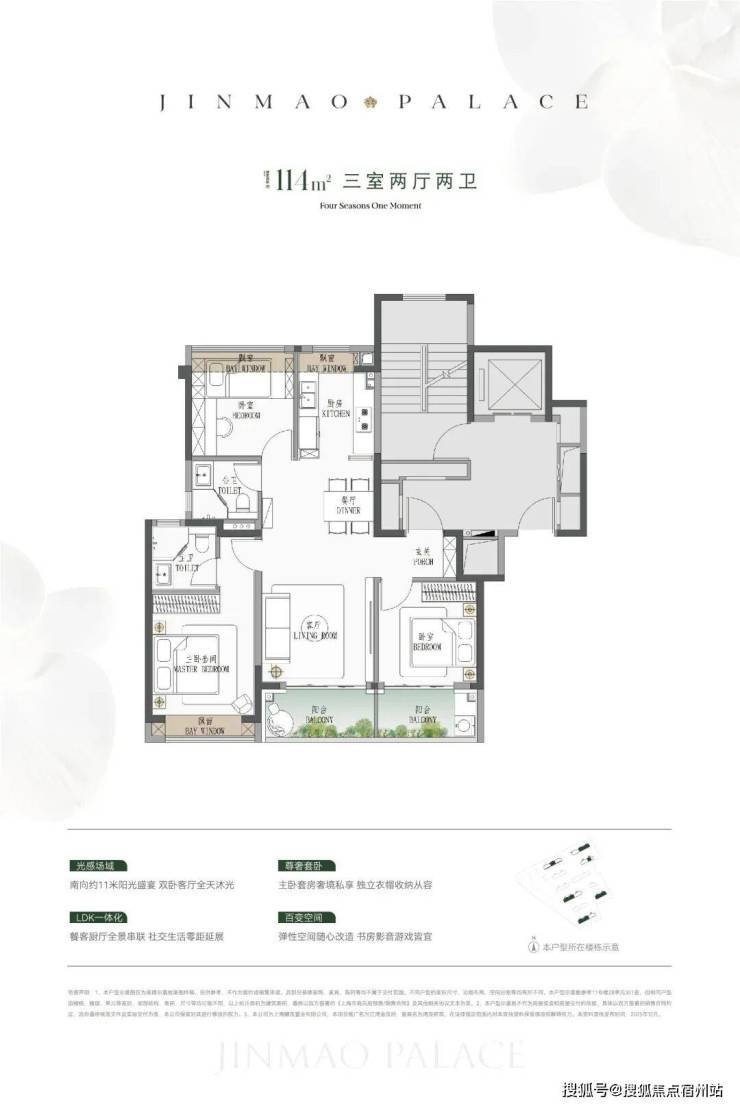 类一梯一户设计,电梯厅私密入户;四个房间,从小太阳到二胎家庭/三代同堂都能轻松托举全屋七飘窗,厨房、卫生间、卧室都有,总面积超过9.9㎡,实用性拉满!建面约190㎡4房: