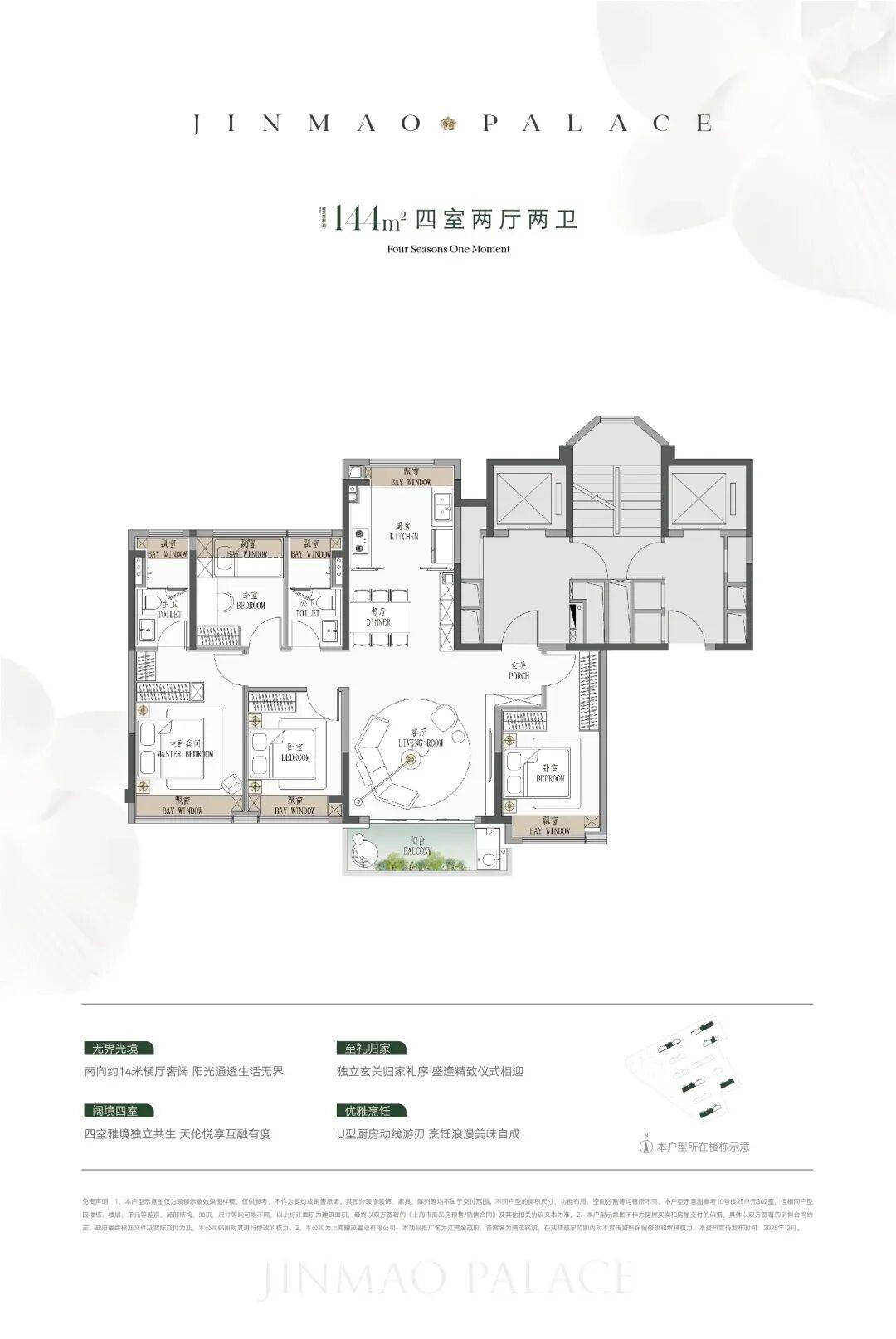 ● 建面约190㎡4房:楼王位置的顶奢大平层,同价位段在杨浦只能买到约120㎡3房!